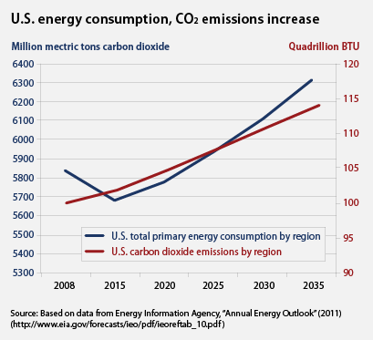 So what did we get for our fidelity to Big Oil back then? Instead of choosing to invest in clean and efficient energy solutions post-2012, giving consumers and businesses a choice in what kind of electricity and fuel to produce and use, we committed ourselves to a carbon-intensive, extractive economic future. We kept drilling and burning, and we kept spewing noxious CO2, smog, and other pollutants into the air at exponential rates. (see graph)